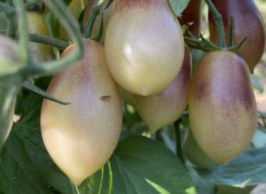 The resistant tomato: A fruity-sweet tomato. Yes, say goodbye to red. Not mealy, you can also eat them raw. Nevertheless, it is perfect for cooking. The plant has few leaves, it grows rather tenderly. Nevertheless, it is more productive than many of its "red colleagues". Strong fruit set due to short internodes. The fruits are easy to harvest.
