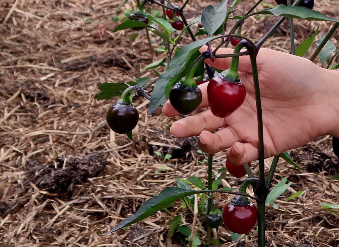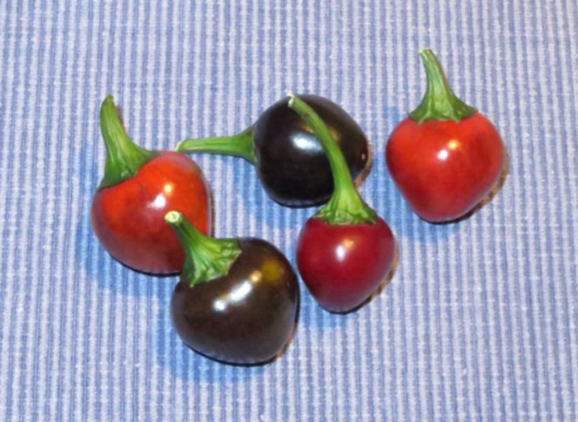 Die Pflanzen können bis 1,2 m groß werden und haben violette Blüten. Die Blätter besitzen zuerst violette Adern, die bei älteren Pflanzen dunkelgrün werden können. Die fruchtigen, herzförmigen Früchte sind ca. 2-3cm groß und reifen über schwarz nach rot ab. Die relativ dickwandigen Chilis sind mittelscharf bis scharf, bei sonnigerem Standplatz auch schärfer (Schärfegrad 5-6). Sie können zum Einlegen und Füllen verwendet werden und lassen sich auch gut trocknen.